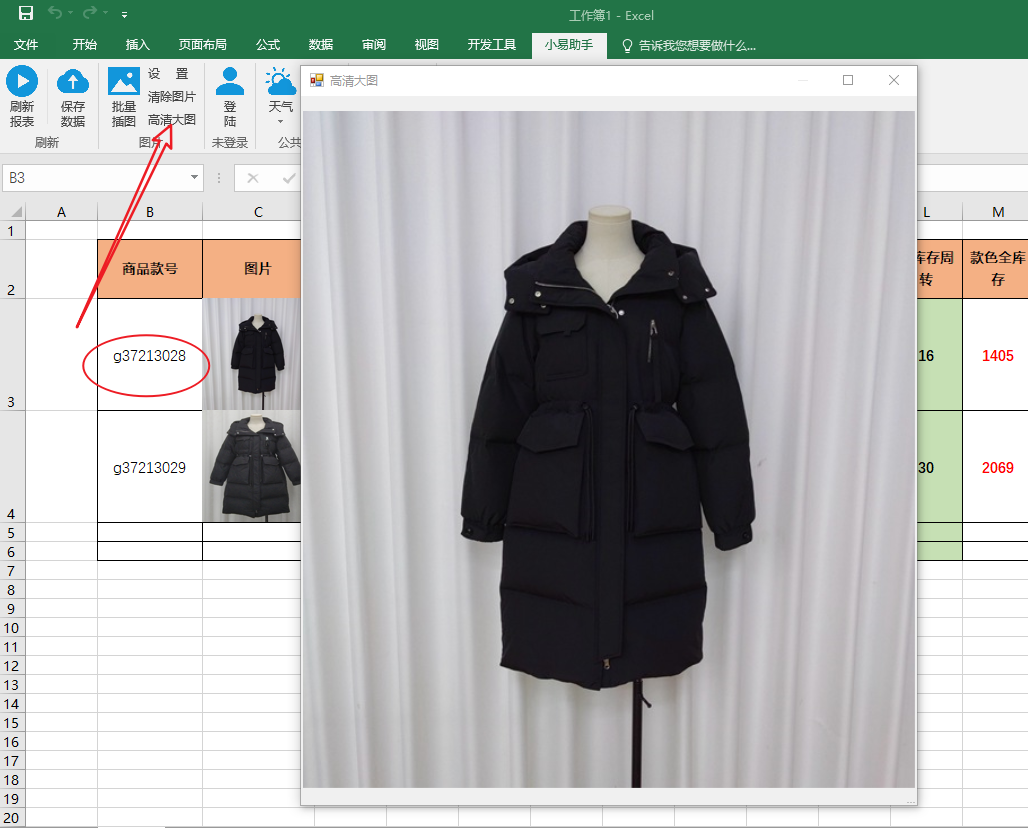 选中图片文件名所在的单元格,点击“高清大图”,即可查看图片的高清大图。
